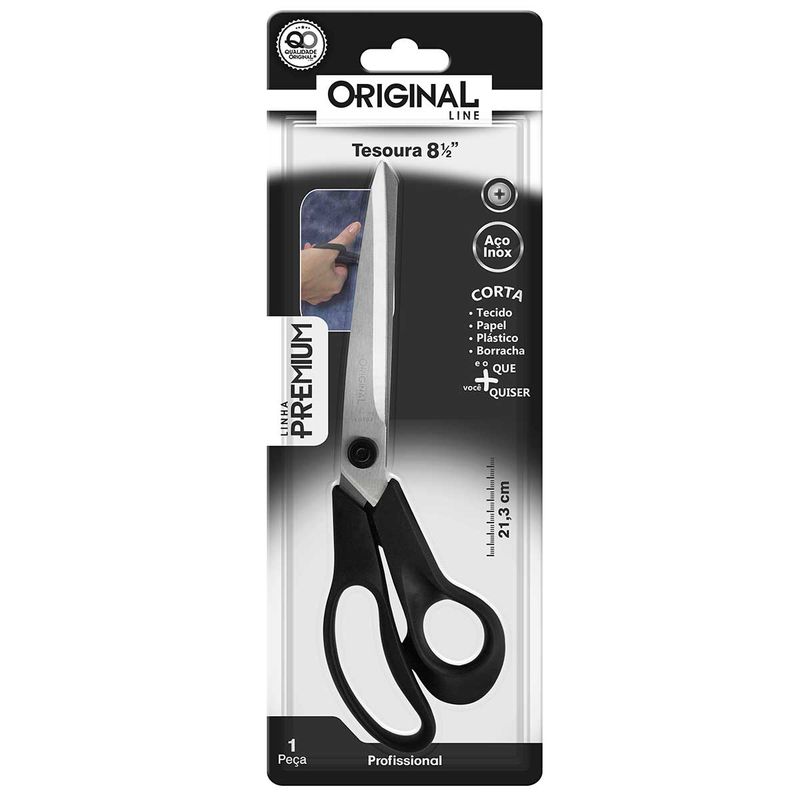 Tesoura Multiuso -Linha Premium -Corta Tecido, Papel, Plástico e Borracha Medidas: 21,3cm Composição: Aço Inox e Plástico Original Line Código de Barras: 7899653780666 Peso: 0,097Kg Ref.: SL0104