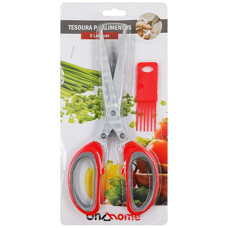Tesoura P/ AlimentosC/ 5 Lâminas Cabo AnatômicoMedidas: 19x7x2cm Composição: Aço InoxCor: VermelhoUniHomeCódigo de Barras: 7899670805724Peso: 0,152kgRef: UD170107