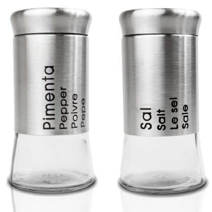 Kit Saleiro e Pimenteiro Aço Inox e Vidro 2 Peças Unihome Código de barras: 7899670808350 Peso: 0,327 Kg Ref: UD191902