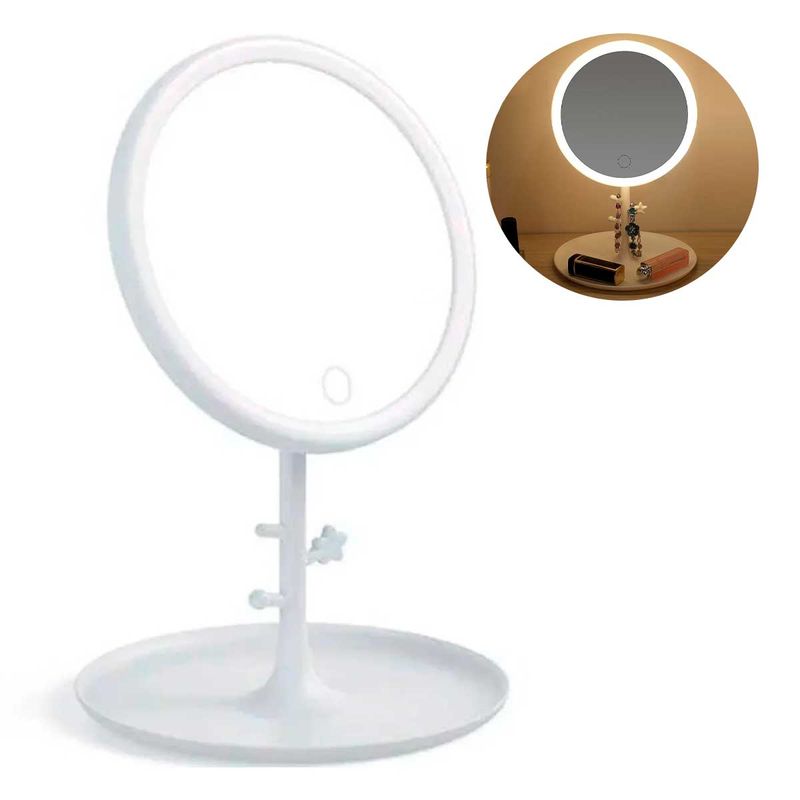 Espelho de Mesa de Plástico 18cm C/ Bandeja e Luz LED UniHome