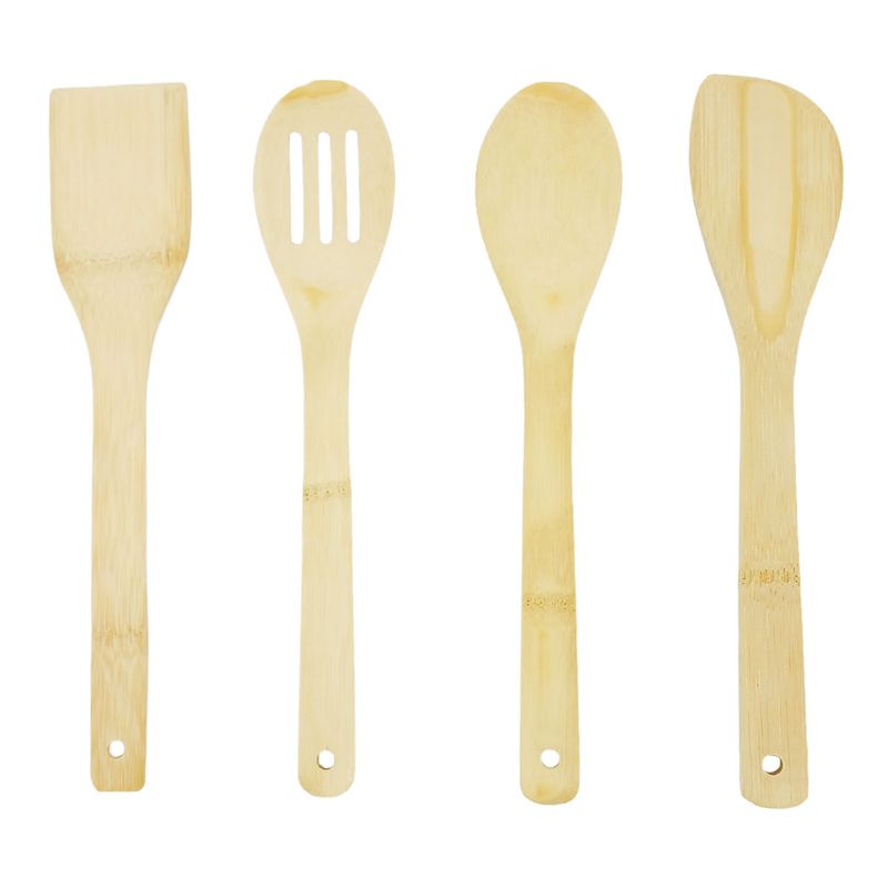 Kit Utensílios de Cozinha 4 Peças em Bambu Unihome
