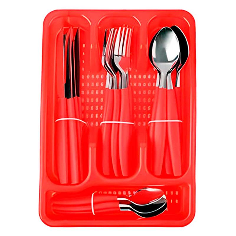 Contém: 25 Peças - 6 Garfos de Mesa; 6 Facas de Churrasco; 6 Colheres de Mesa; 6 Colheres de Chá; e 1 Suporte