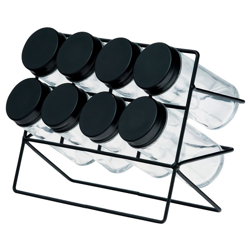 Jogo de Porta Tempero - Contém 8 Potes (Vidro) - 1 Suporte (Metal - Capacidade: 150ml Medidas: 15x7x8cm Cor: Preto Lyor Código de Barras: 7899768011730 Peso: 1,090kg Ref: 1173