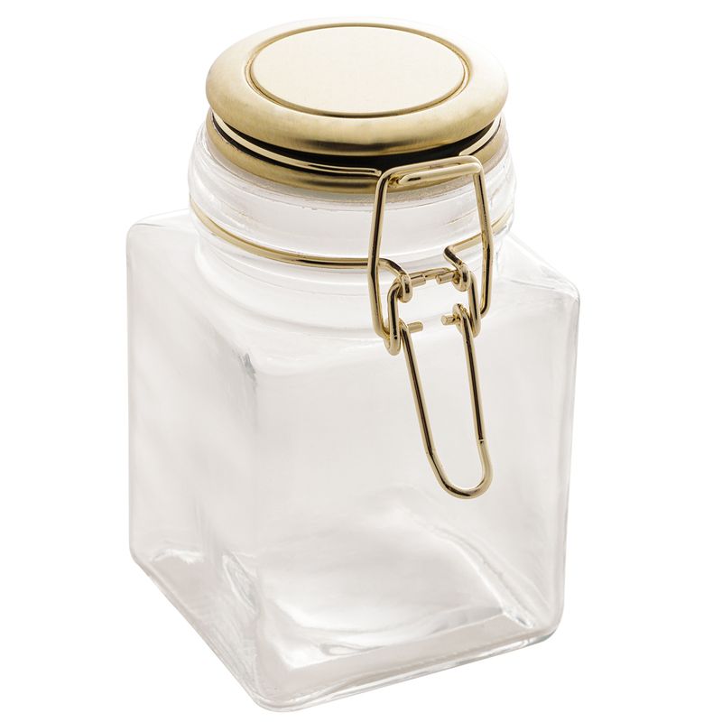 Pote Hermético Vidro 7x12cm Tampa em Metal Dourado Lyor Código de Barras: 7899768014182 Peso: 0,290 Kg Ref: 1418