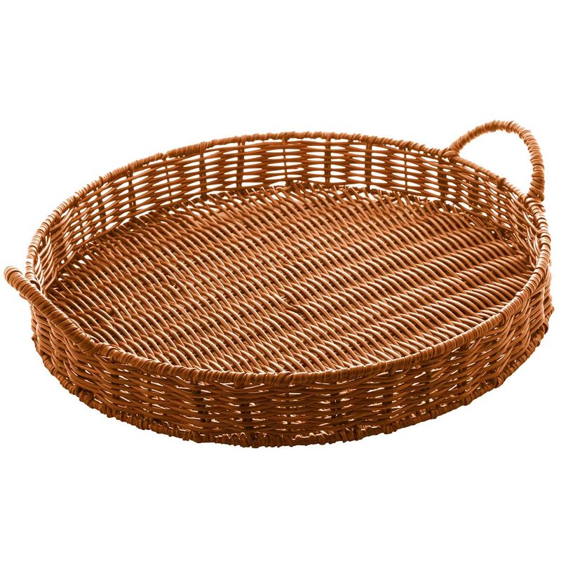 Bandeja Rattan Redonda C/ Alça 38cm em Plástico Lyor