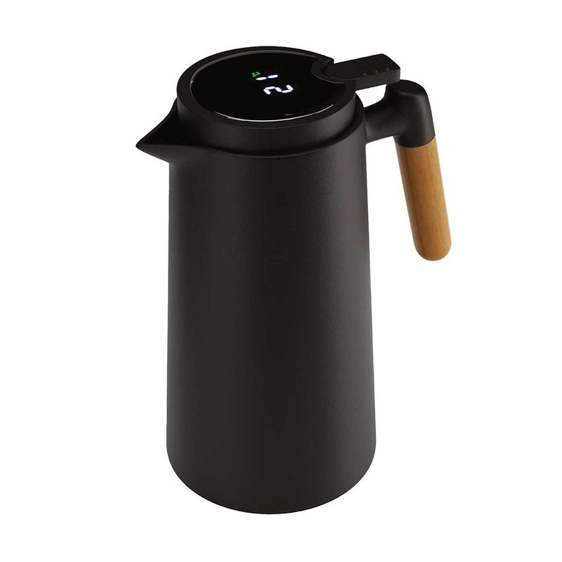 Garra Térmica C/ Termômetro - Capacidade: 1 Litro Medidas: 25,5cm Composição: Plástico Revestimento em Inox - Cabo em Madeira Cor: Preto Lyor Código de Barras: 7899768028752 Peso: 0,618kg Ref: 2875
