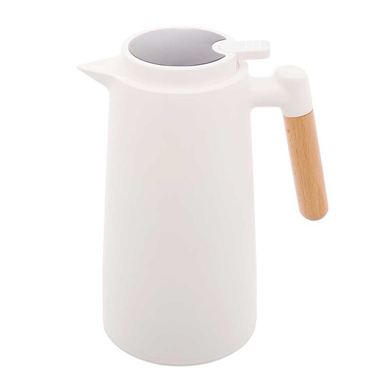 Garra Térmica C/ Termômetro - Capacidade: 1 Litro Medidas: 25,5cm Composição: Plástico Revestimento em Inox - Cabo em Madeira Cor: Branco Lyor Código de Barras: 7899768029438 Peso: 0,618kg Ref: 2943