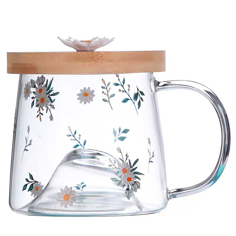 Caneca Daisy C/ Pires Bambu 330ml em Vidro Lyor