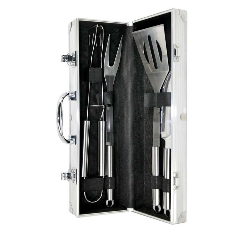 Kit Churrasco Kit churrasco 5 peças - Maleta de Alumínio - 1 Faca 28 cm - 1 Garfo 34,5 cm - 1 Pegador 34,5 cm - 1 Espátula 34,5 cm Código de barra: 7899790903386 Casita Peso: 1,022 Kg Ref: CA12102