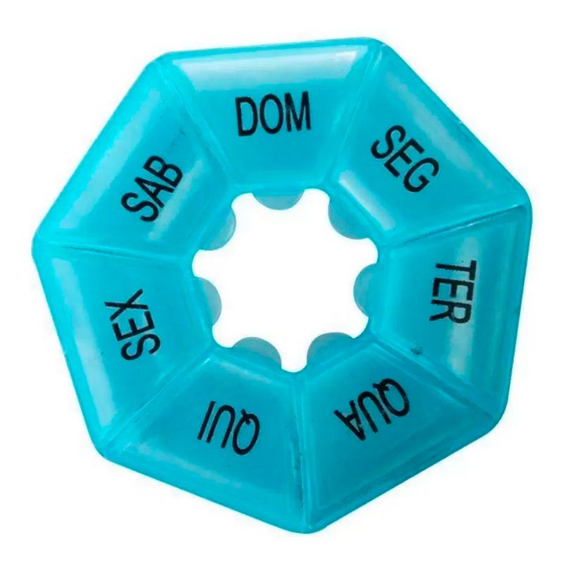 Porta Comprimidos Semanal - C/ 7 Divisórias Composição: Plástico Medidas: 8cm Cores Sortidas Imporiente Código de barras: 7899790922318 Peso: 0,019 Kg Ref: CA12309