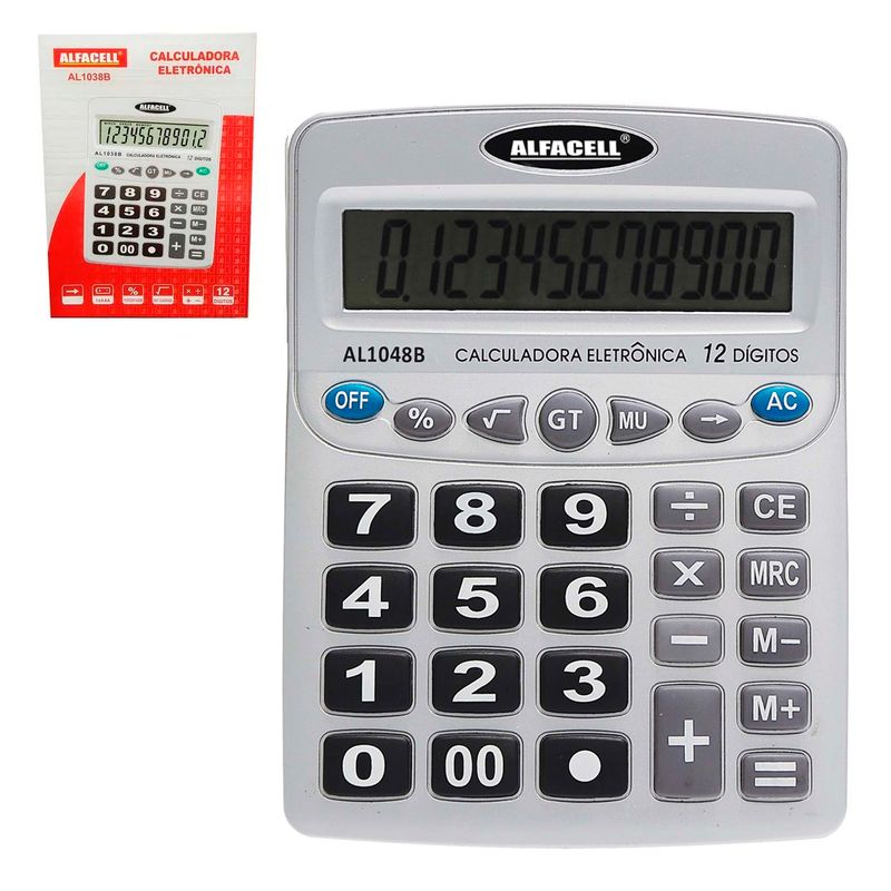 Calculadora de Mesa - 12 Dígitos - 1 Pilha AA (Não Inclusa) Medidas: 20x16cm Composição: Plástico Imporiente Código de barras: 7899790927832 Peso: 0,245 Ref: AL1048B