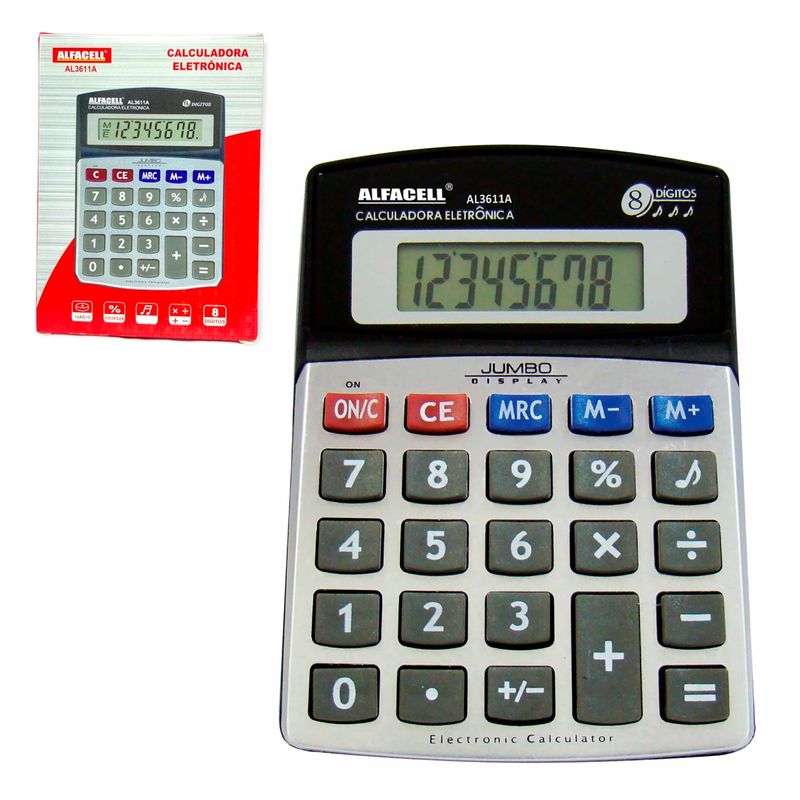 Calculadora Eletrônica de Mesa - 8 Dígitos - 1 Bateria AG10 (Inclusa) Medidas: 13x9cm Composição: Plástico Imporiente Código de barras: 7899790927917 Peso: 0,085 Ref: AL3611A