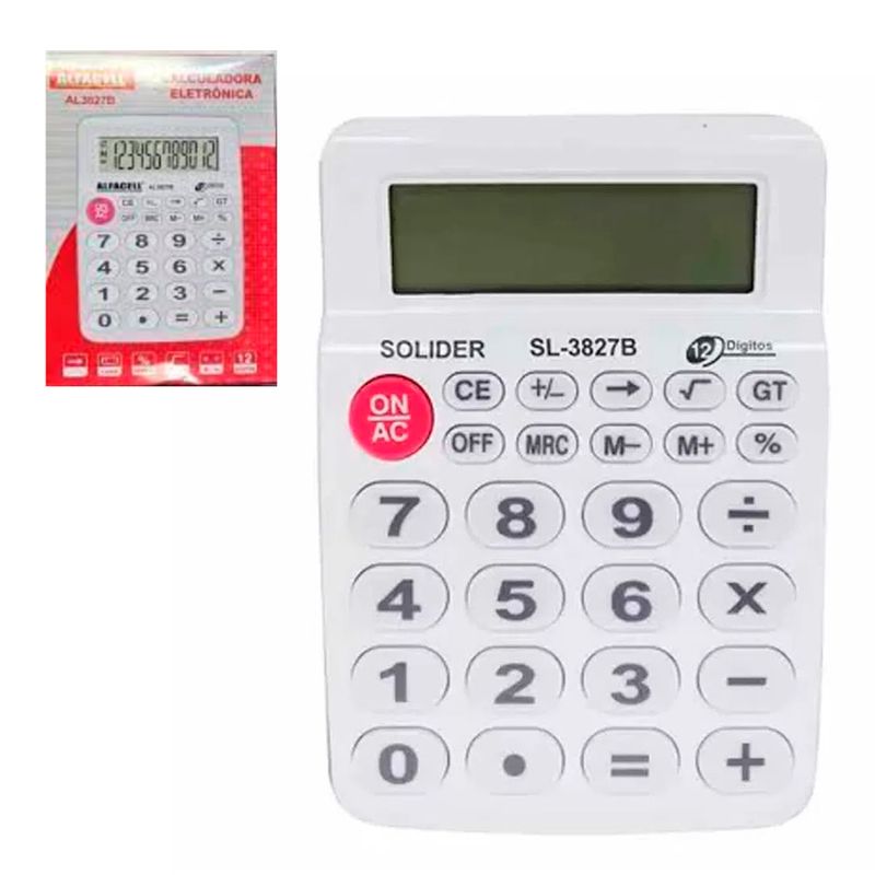 Calculadora de mesa - 12 digitos - 2 Pilhas AAA ( Não Inclusa) Medidas: 11x15cm Composição: Plástico Imporiente Código de barras:7899790928006 Peso:0-147KG Ref:AL3827B