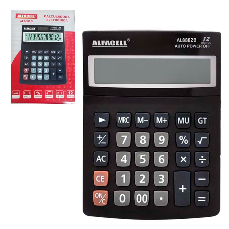 Calculadora Eletrônica de Mesa - 12 Dígitos - 1 Pilha AAA (Não Inclusa) Medidas: 17x13cm Composição: Plástico Imporiente Código de barras: 7899790928228 Peso: 0,175 Ref: AL8882B