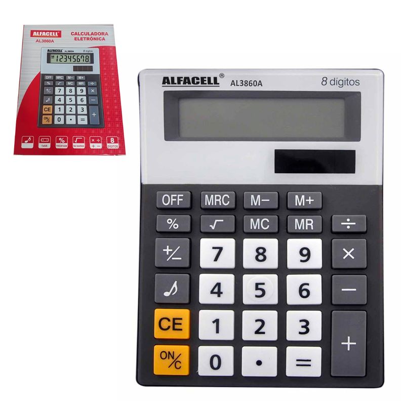 Calculadora Eletrônica de Mesa - 8 Dígitos - 1 Pilha AA (Não Inclusa) Medidas: 15x11cm Composição: Plástico Imporiente Código de barras: 7899790928259 Peso: 0,130 Ref: AL3860A