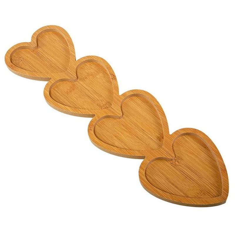 Petisqueira Coração 4 Divisórias 14x49cm em Bambu Imporiente