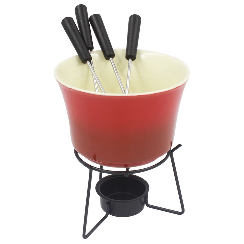 Contém: 6 Peças - 4 Garfos, 1 Panela de Fondue e 1 Suporte P/ Panela