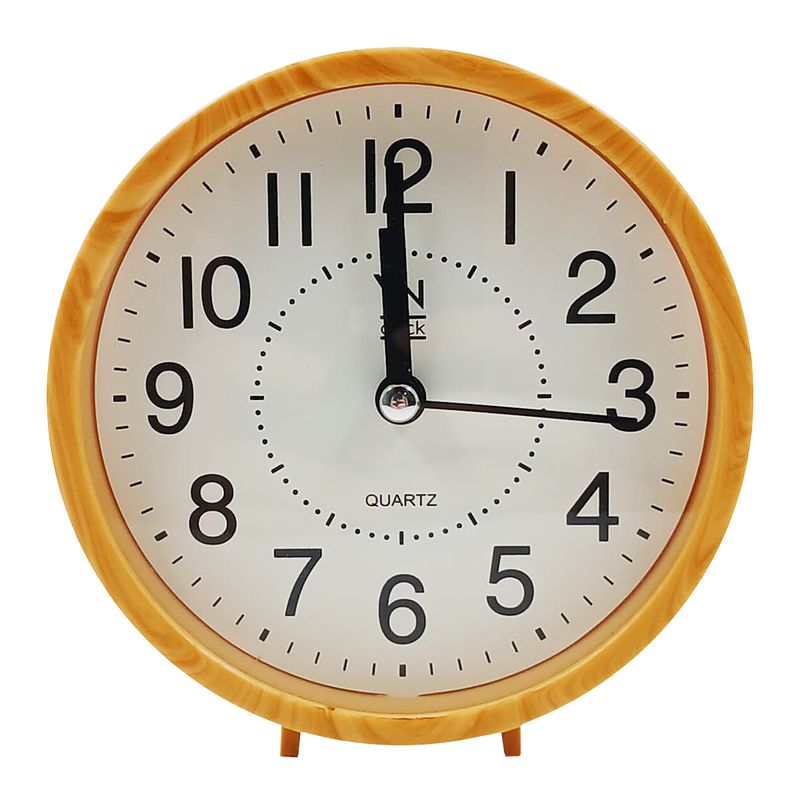 Relógio de Mesa -Redondo -Analógico -C/ Despertador -Estampa Amadeirada -Alimentação 1 Pilha AA (Não Inclusa) Medidas: 11x11x4cm Composição: Plástico e Vidro Imporiente Código de Barras: 7899790939804 Peso: 0,118Kg Ref.: SDG1585