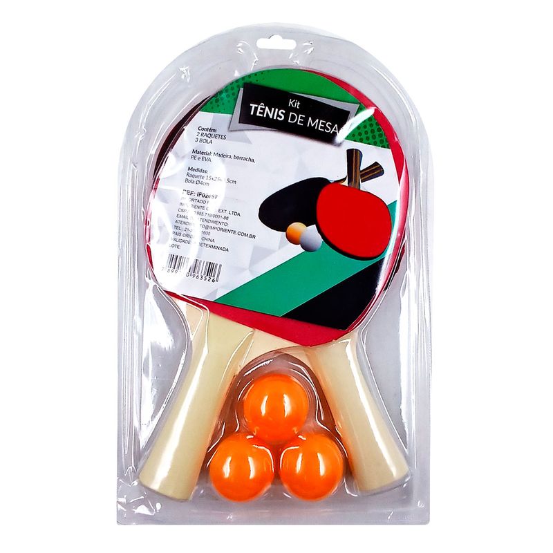 Kit Tênis De Mesa 5 Peças 15x25cm em Madeira Imporiente
