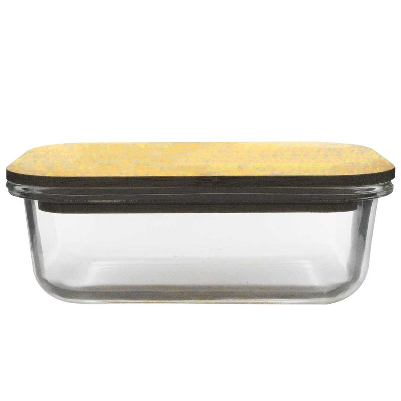 Pote Retangular C/ Tampa Bambu 370ml em Vidro Casita