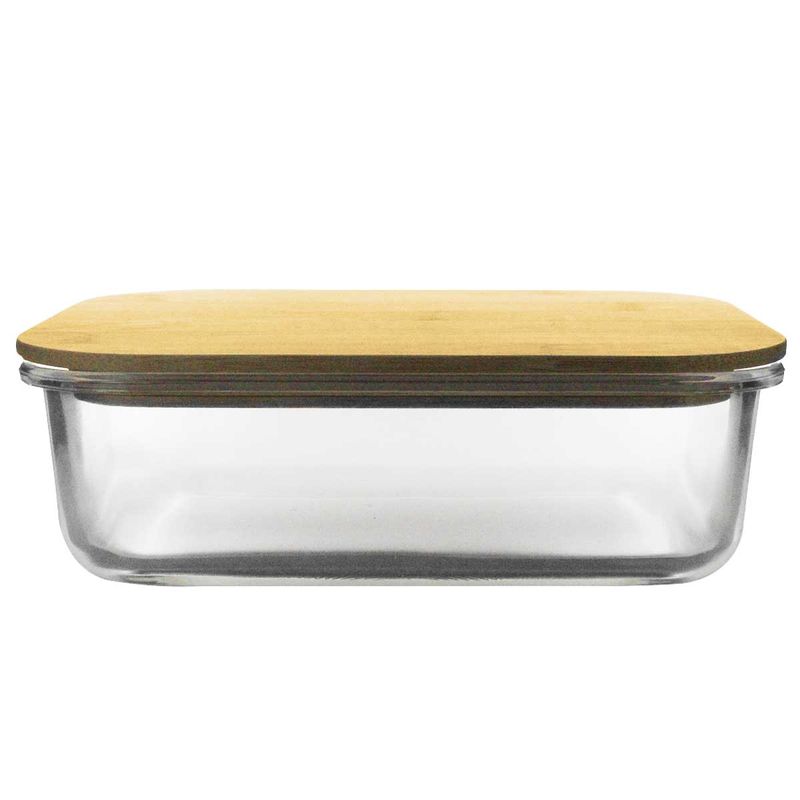 Pote Retangular C/ Tampa Bambu 1040ml em Vidro Casita