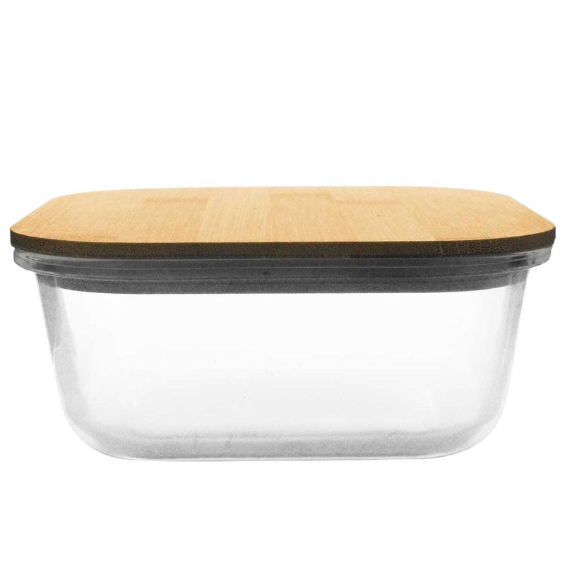 Pote Quadrado C/ Tampa Bambu 800ml em Vidro Casita