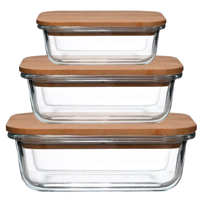 Medidas: Grande - 19,8x14,8x6,8cm (1040ml); Médio - 16,9x12,3x6cm (640ml); Pequeno - 14,5x10,4x5,5cm (370ml)