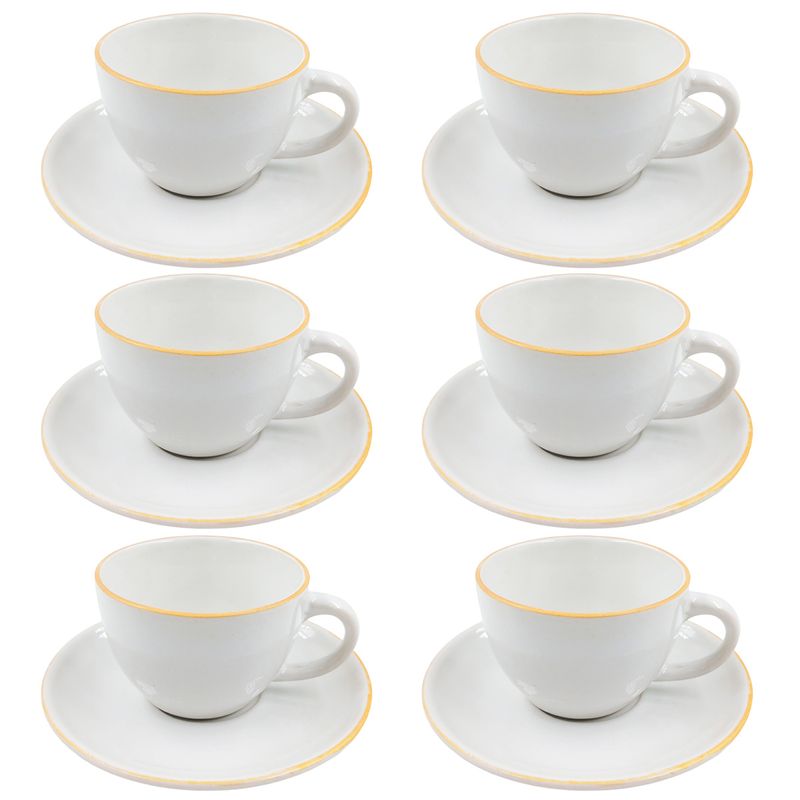 Contém: 12 Peças- 6 Xícaras (6,5x5 cm) e 6 Pires (11,5x1,6 cm)