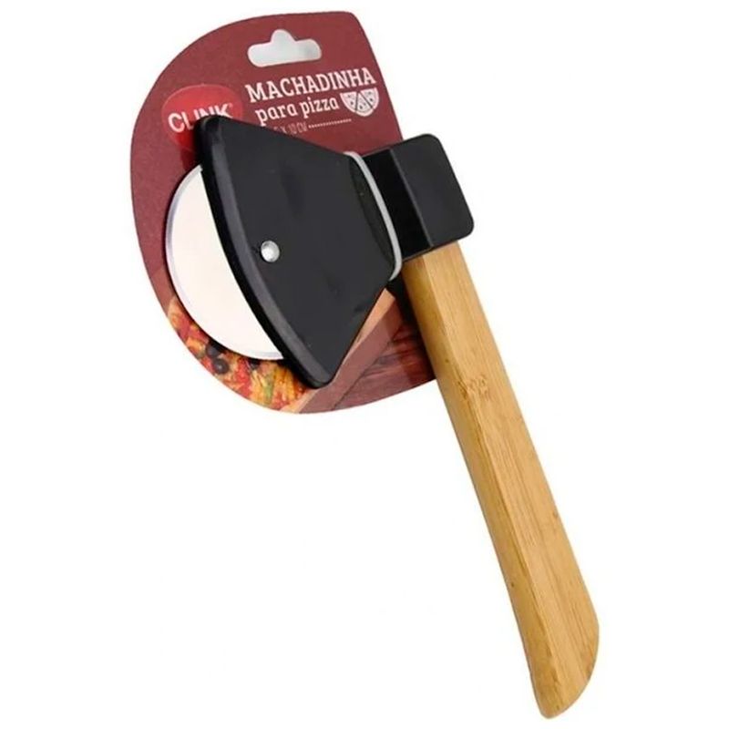 Cortador P/ Pizza Machadinha em Aço Inox e Bambu 20,5x10cm Clink