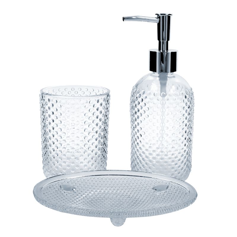 Kit Banheiro Bolinhas 3 Peças em Vidro Clink