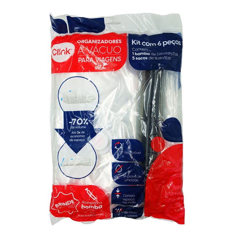 Kit Saco Organizador Á Vácuo+ Bomba 5 Peças em Plástico Clink