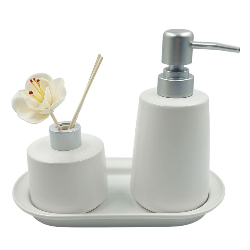Contem: 3 peças (Difusor,Bandeja,Porta Sabonete Liquido)