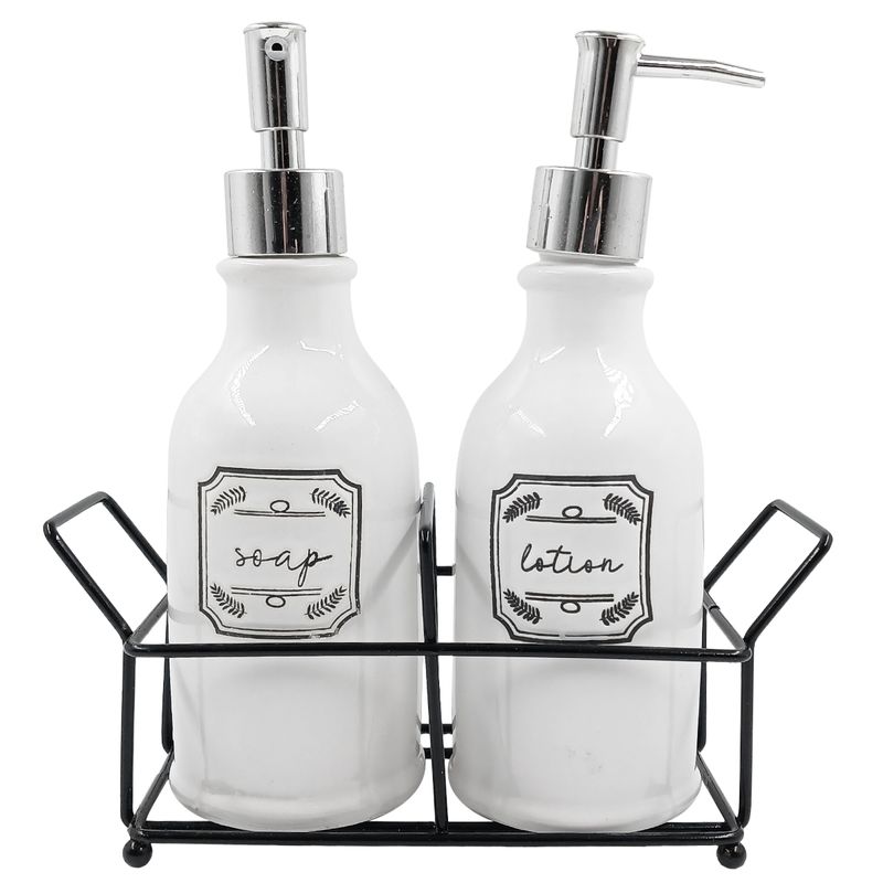 Kit Banheiro -C/ Suporte Metal Contém: 2 Peças Medidas: Dispenser - 22x7,5cm; Suporte - 9,5x21,5x8,5; Composição: Cerâmica, Plástico e Metal Dolce Home Código de Barras: 7899931522285 Peso: 0,658Kg Ref.: D1671