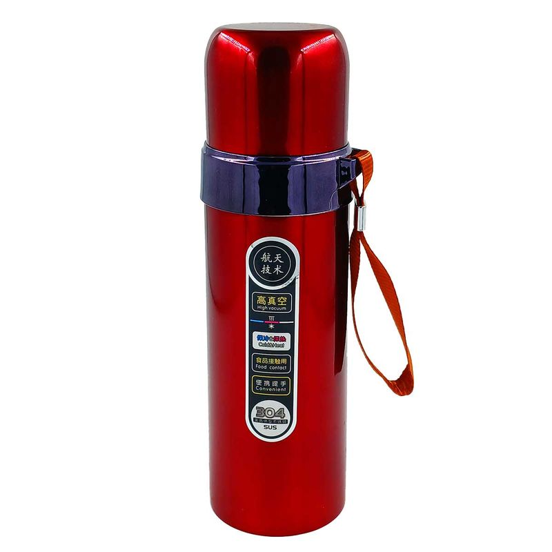 Garrafa Térmica -C/ Alça -Botão Abre e Fecha -Parede Dupla -Mantém a Temperatura da Bebida Capacidade: 430ml Composição: Aço Inox e Plástico Golden Rio Código de Barras: 7908044814658 Peso: 0,287Kg Ref.: GDR1465