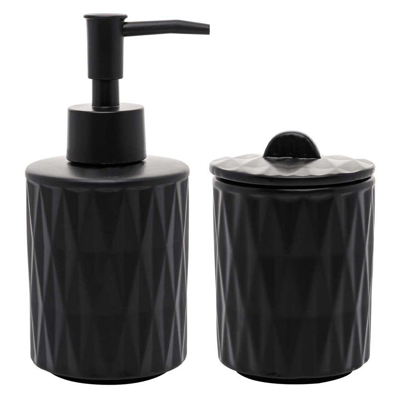 Kit Banheiro - Contém 2 Peças - 1 Pote com Tampa (11,5cm) - 1 Porta Sabonete Líquido (16,5cm) Composição: Cerâmica Lyor Código de Barras: 7908122202292 Peso: 0,423kg Ref: 220229