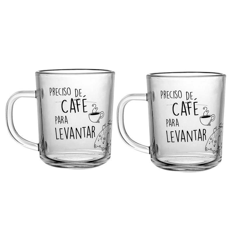 Jogo de Canecas Café P/ Levantar 2 Peças 220ml em Vidro Lyor