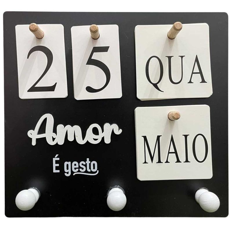 Calendário de Parede Decorativo C/ Pinos Medidas: 21,5x19,8cm Composição: Madeira FWB Código de Barras: 7908148513563 Peso: 0,283Kg Ref.: 1356