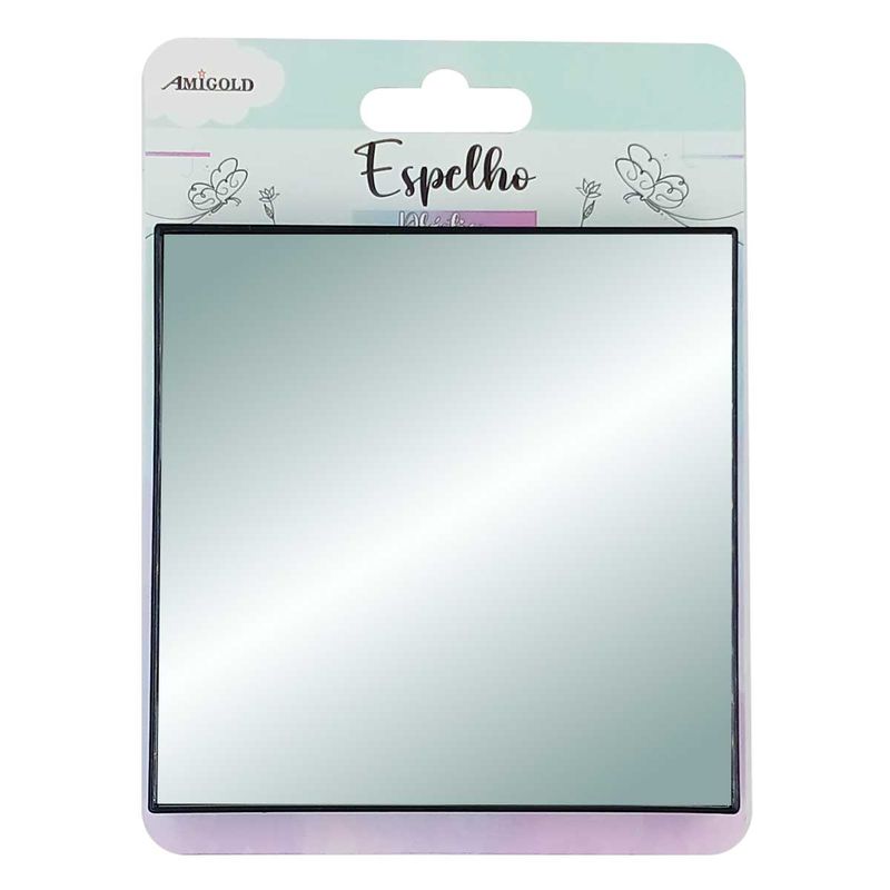 Espelho Quadrado C/ Ventosas 14x14cm em Plástico Amigold