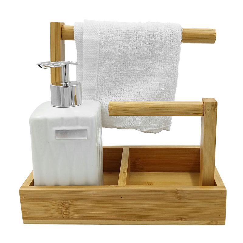 Kit Banheiro C/ Suporte Bambu 2 Peças em Porcelana Amigold