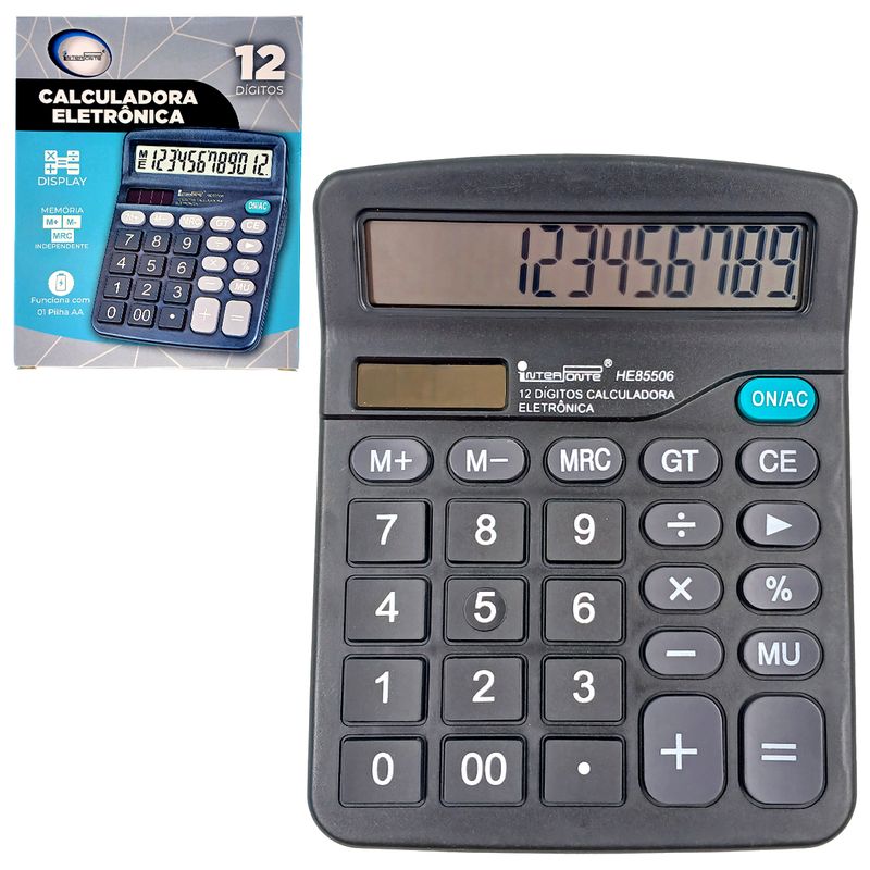 Calculadora de Mesa -C/ 12 Dígitos -Alimentação 1 Pilha AA (Não Inclusa) Medidas: 14,5x11,8cm Composição: Plástico Interponte Código de Barras: 7908174947431 Peso: 0,107Kg Ref.: HE85506