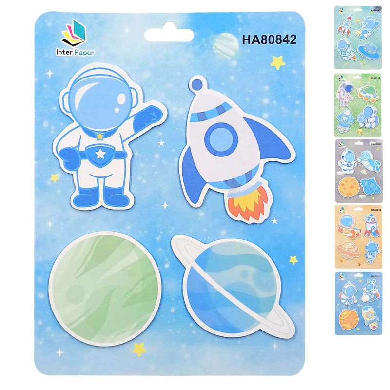 Bloco de Anotação - Contém 4Peças (20 Páginas Cada) -Auto Adesivo - Astronauta - Modelos Sortidos- Medidas: 18,5x14cm Composição: Papel Interponte Código de Barras: 7908174956198 Peso: 0,23kg Ref.: HA80842