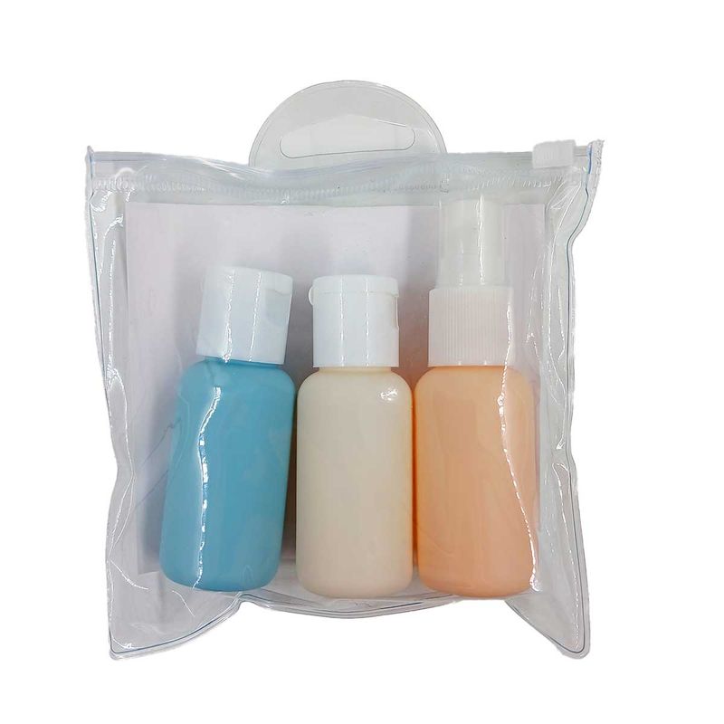 Kit Viagem -Color Contém: 4 Peças - 1 Frasco Spray, 2 Frascos C/ Tampa e 1 Sacola Transparente Capacidade: Frasco Spray 35ml; Frasco C/ Tampa 35ml; Composição: Plástico Interponte Código de Barras: 7908174957058 Peso: 0,043Kg Ref.: HV84829