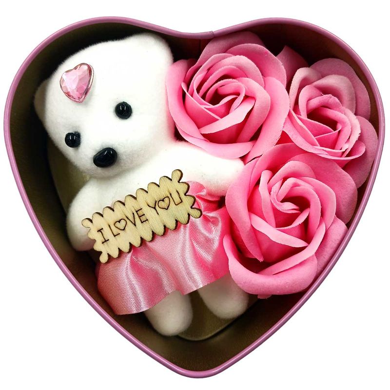 Lata Coração C/ Pelúcia Contém: 1 Lata + 1 Ursinho + 3 Mini Rosas Decorativas Medidas: 11,5x11,5cm Composição: Metal Interponte Código de Barras: 7908174958857 Peso: 0,078kg Ref: HD68303