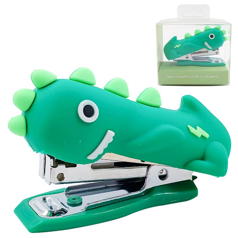 Mini Grampeador -Dinossauro -C/ Grampos Contém: 1 Grampeador e 1000 Grampos 5mmMedidas: 7,5x4,5cm Composição: Plástico InterponteCódigo de Barras: 7908174962434Peso: 0,050KgRef.: HE63751