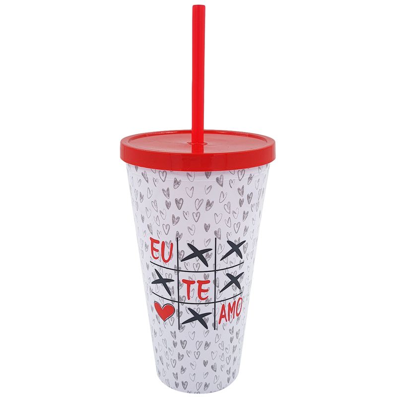 Copo C/ Canudo Amor 600ml em Plástico Interponte