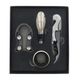 Kit Vinho Composição: 1 Abridor de Vinho 1 Bico Dosador 1 Corta Lacres 1 Anel P/ Garrafa Composição: Metal Onyx Trade Código de Barras: 7908197952108 Peso: 0,162Kg Ref.: 5210