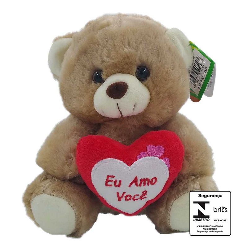 Urso de Pelúcia C/ Coração 16x22cm em Poliéster Fizzy