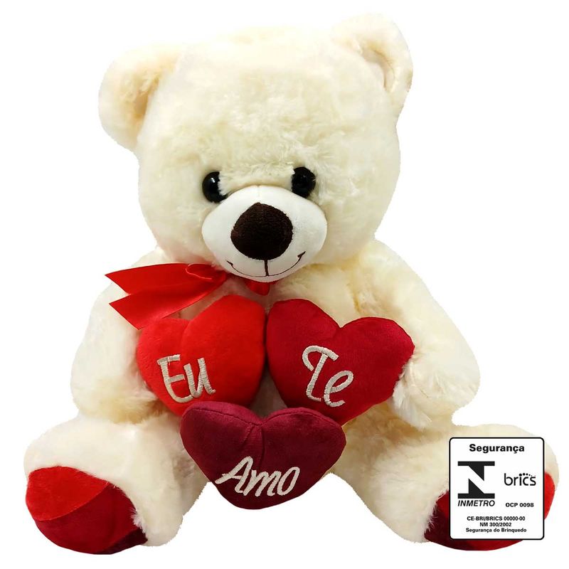 Urso de Pelúcia C/ Corações 33cm em Poliéster Fizzy