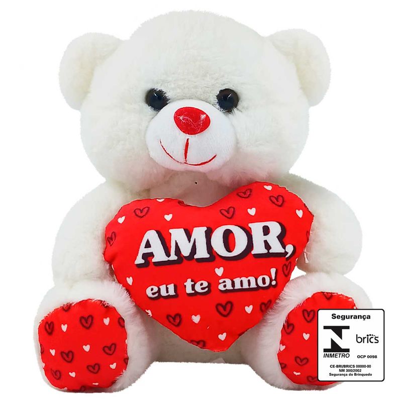 Urso De Pelúcia C/ Coração 20cm em Poliéster Fizzy