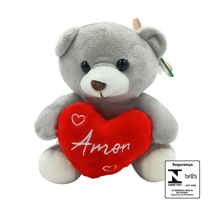 Urso de Pelúcia C/ Coração 14cm em Poliéster Fizzy